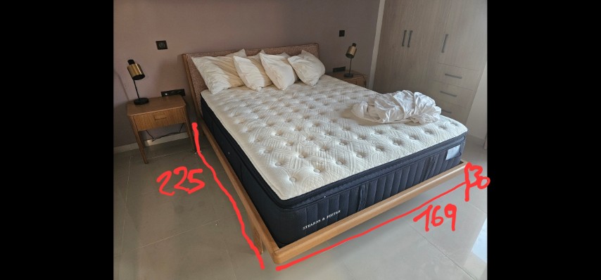 Πωλείται σετ κρεβατοκάμαρας, σε άριστη κατάσταση, από μασίφ ξύλο δρυός. Διπλό κρεβάτι από μασίφ ξύλο, με κεφαλάρι. Διαστάσεις 225*169*30 (Μ*Π*Υ). Τιμή 550 ευρώ. Στρώμα Stearns & Foster Haraway (Elite Strom) 160cm. Τιμή 450 ευρώ. Κομοδίνα (2) από μασίφ ξύλο. Διαστάσεις 41*50*53 (Μ*Π*Υ). Τιμή 120 ευρώ έκαστο.